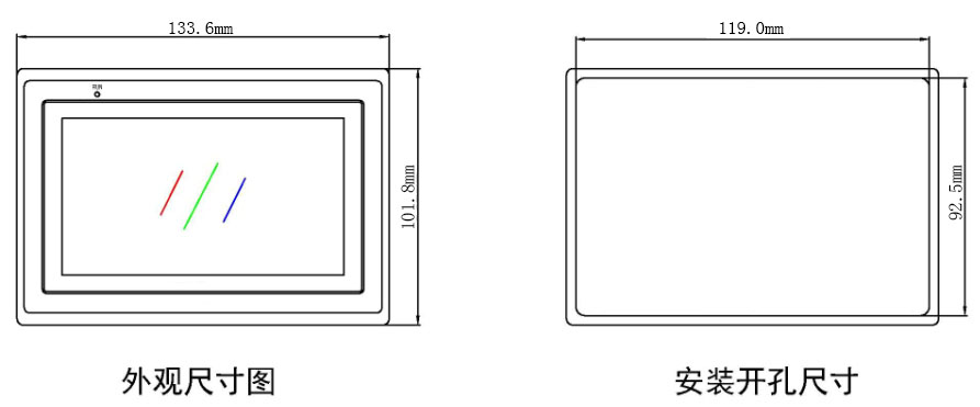 安裝開孔尺寸:119.0×92.5(單位mm),建議實際開孔比該尺寸大1mm。