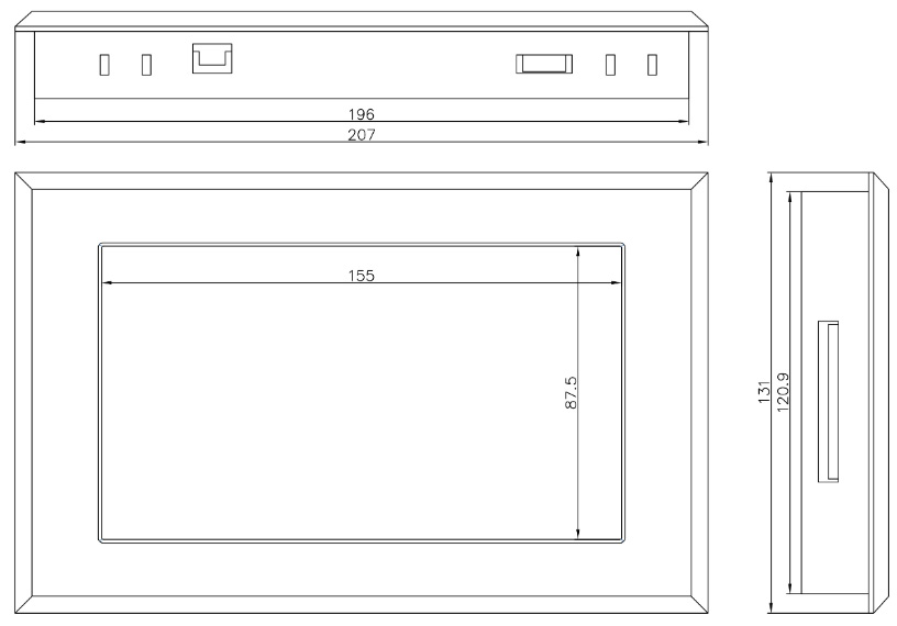 安裝框外型尺寸:207×131(單位mm)